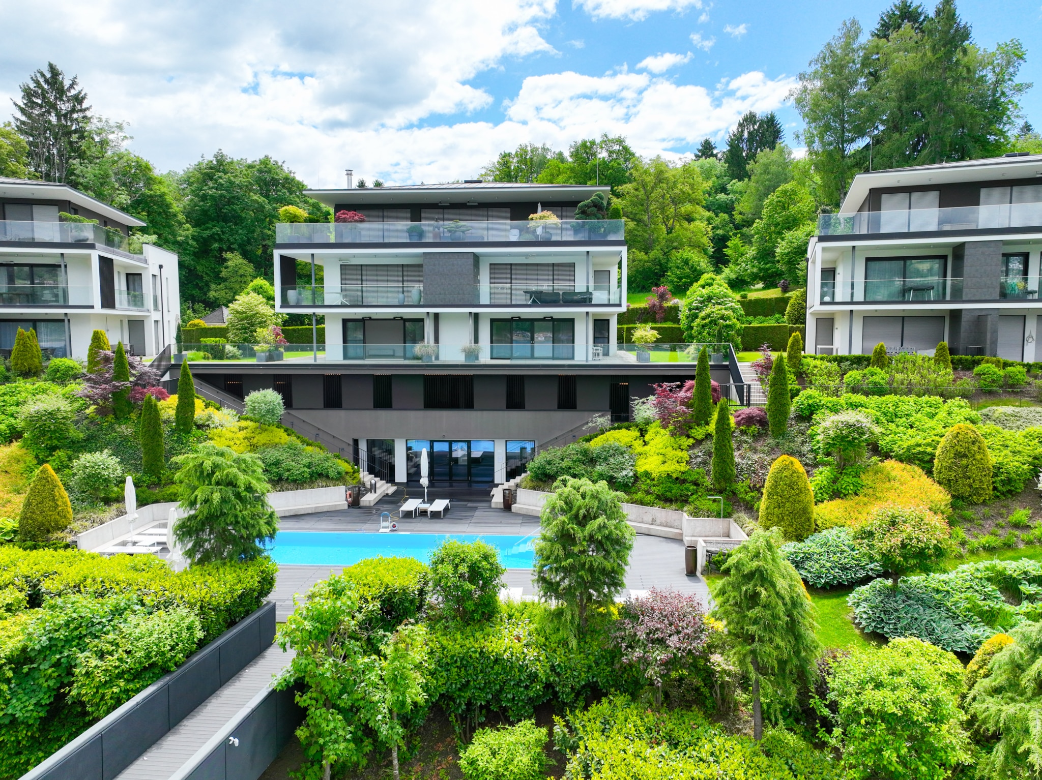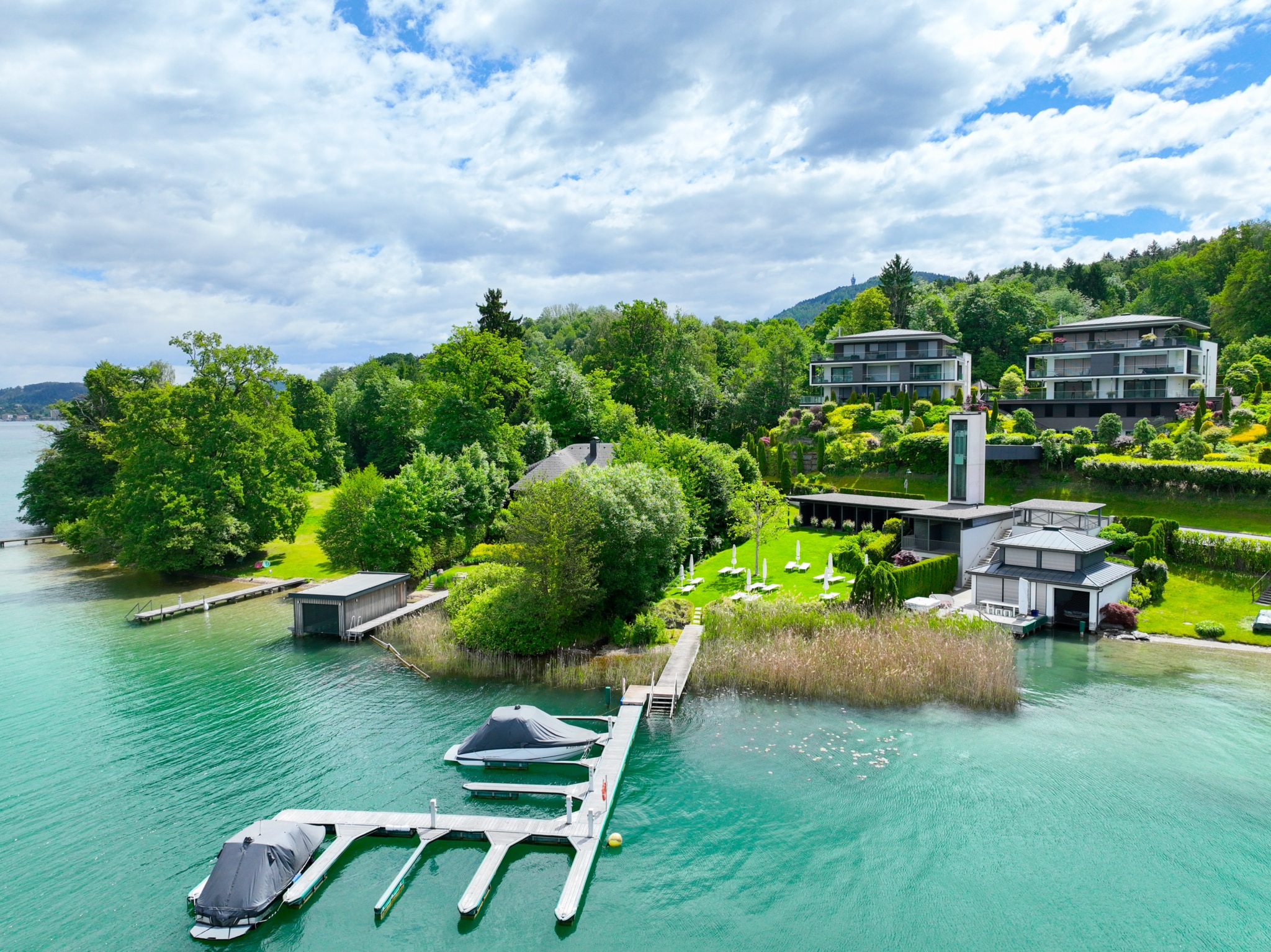 Diese Traumanlage gehört zu den wohl exklusivsten Neubauanlagen des Wörthersees und besticht vor allem durch ihre atemberaubende Gartengestaltung, den beheizten Outdoorpool, den traumhaften Wörtherseeblick bis nach Velden (samt den unvergleichbaren Sonnenuntergängen) und den großzügigen und exklusiv ausgestatteten Strandbereich.
