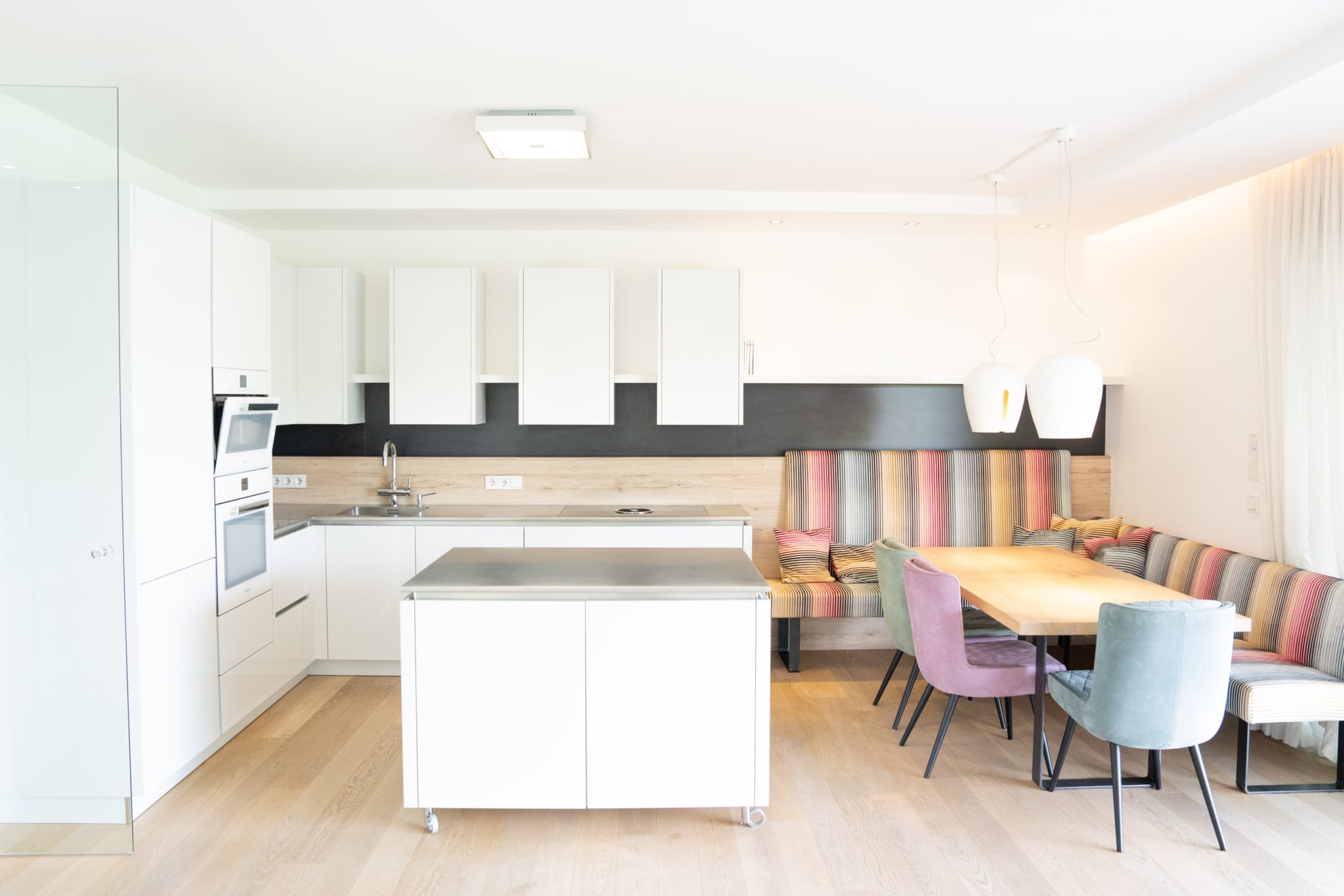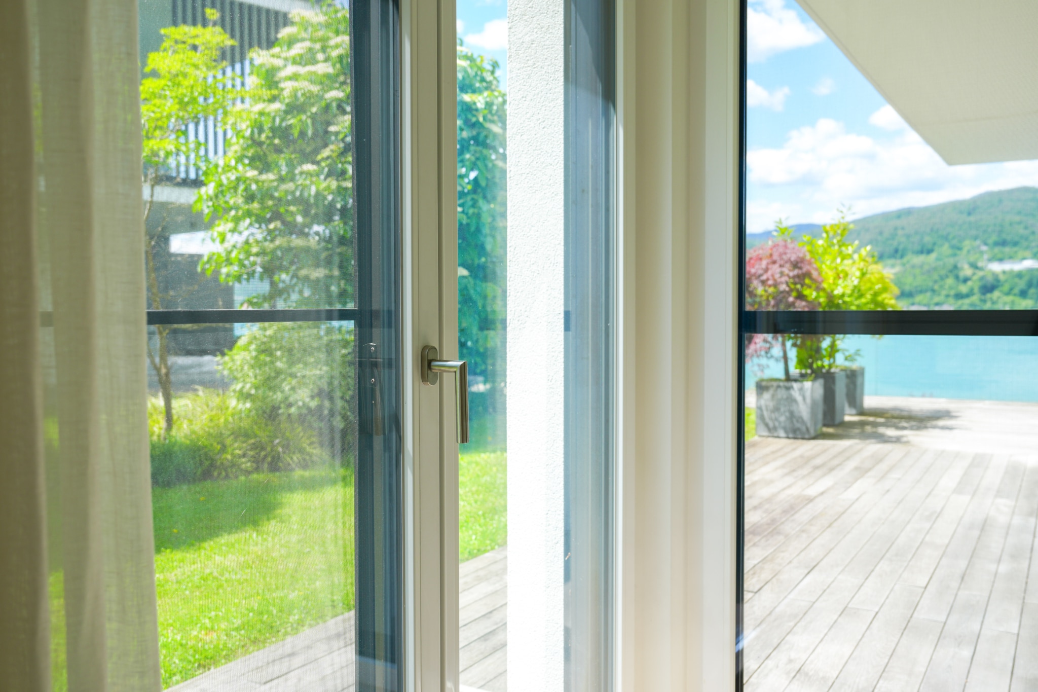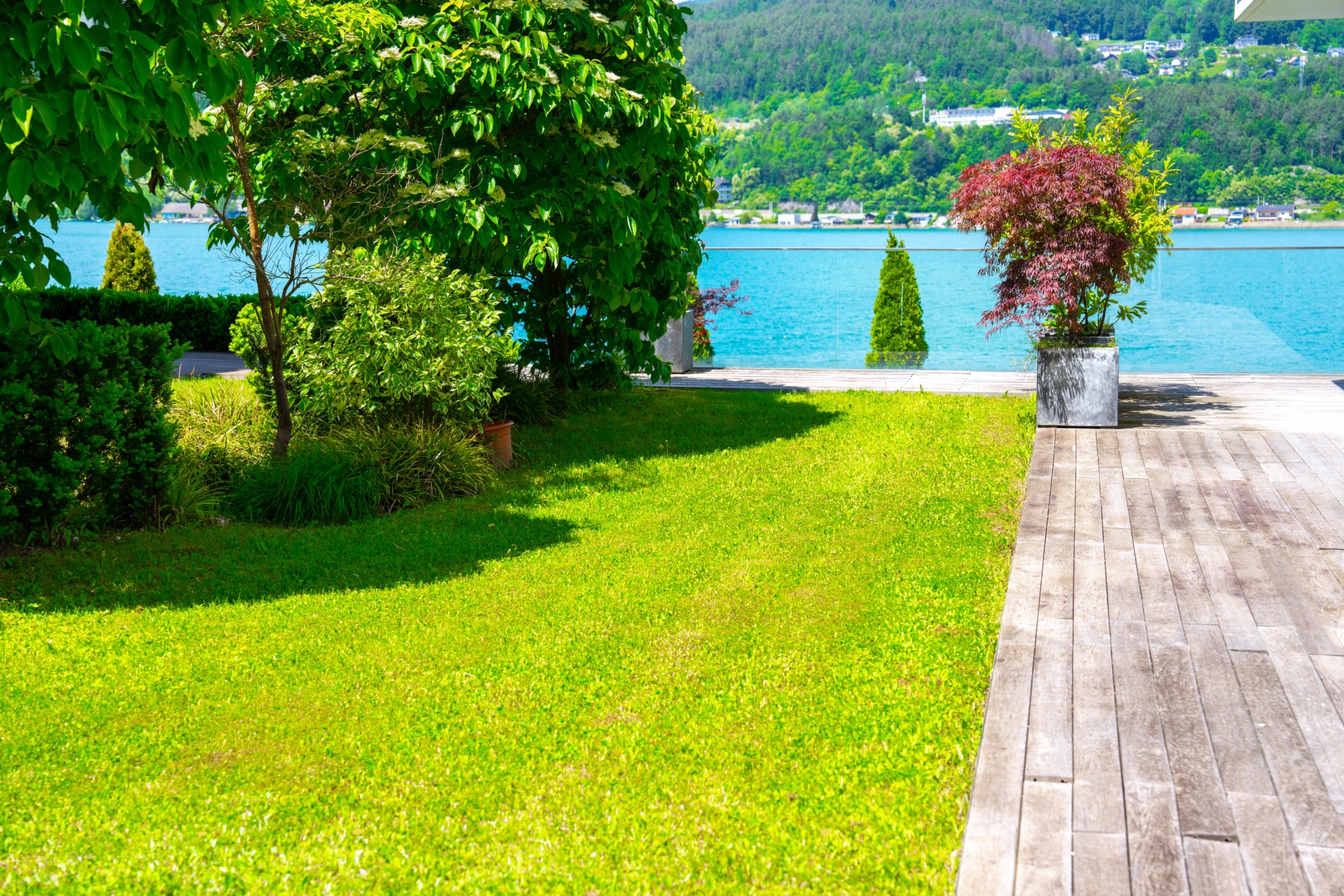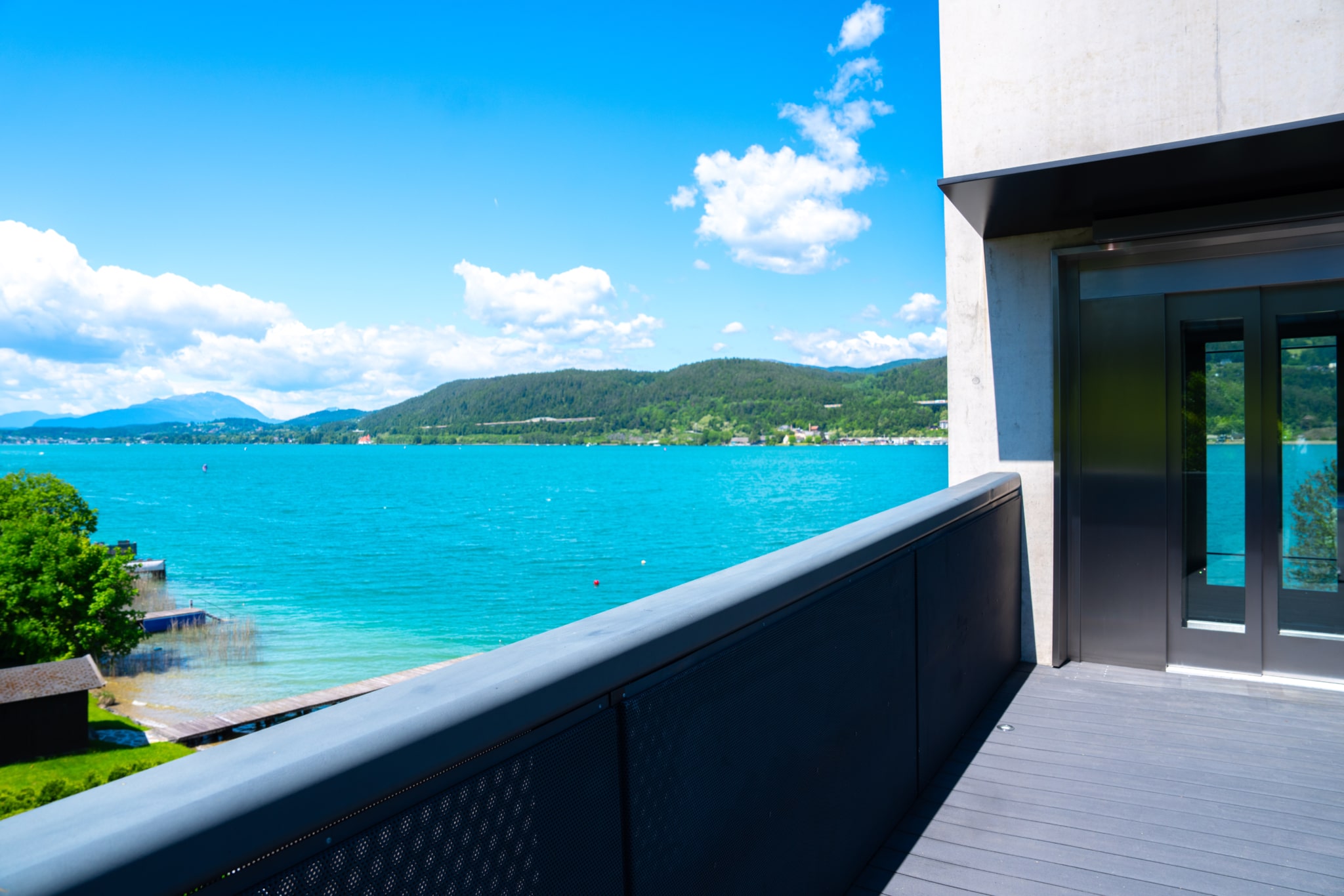 Das absolute Highlight dieses lichtdurchfluteten Seetraums ist die gigantische Seeblickterrasse (großteils überdacht), von welchem man atemberaubende Sonnenuntergänge und einen wunderschönen Wörtherseeblick genießen kann. Der angrenzende Eigengarten, welcher von allen Räumlichkeiten aus erreichbar ist, bietet genügend Gestaltungsmöglichkeiten um das facettenreiche Seeleben direkt von der Gartenseewohnung aus genießen und erleben zu können.
