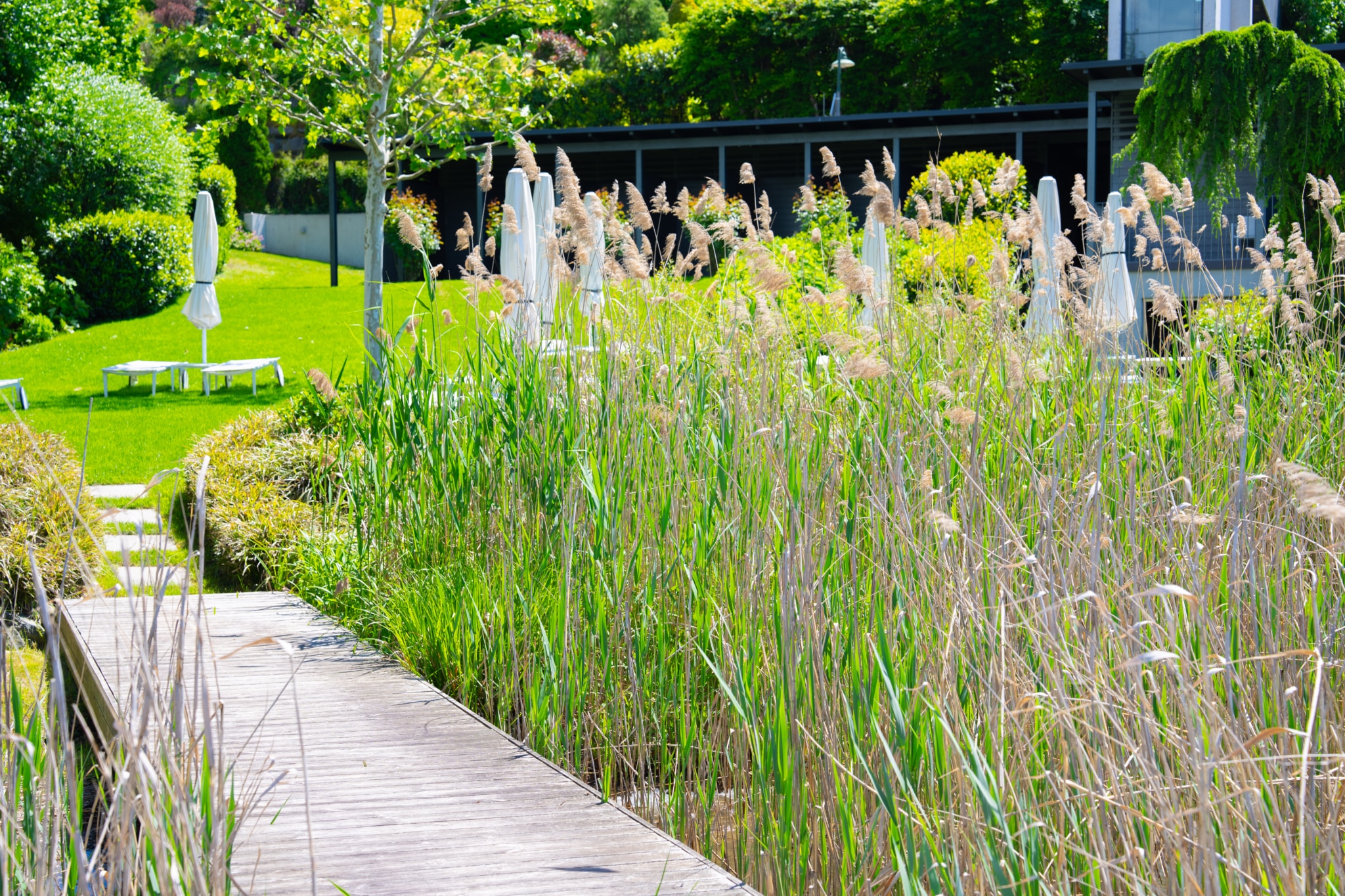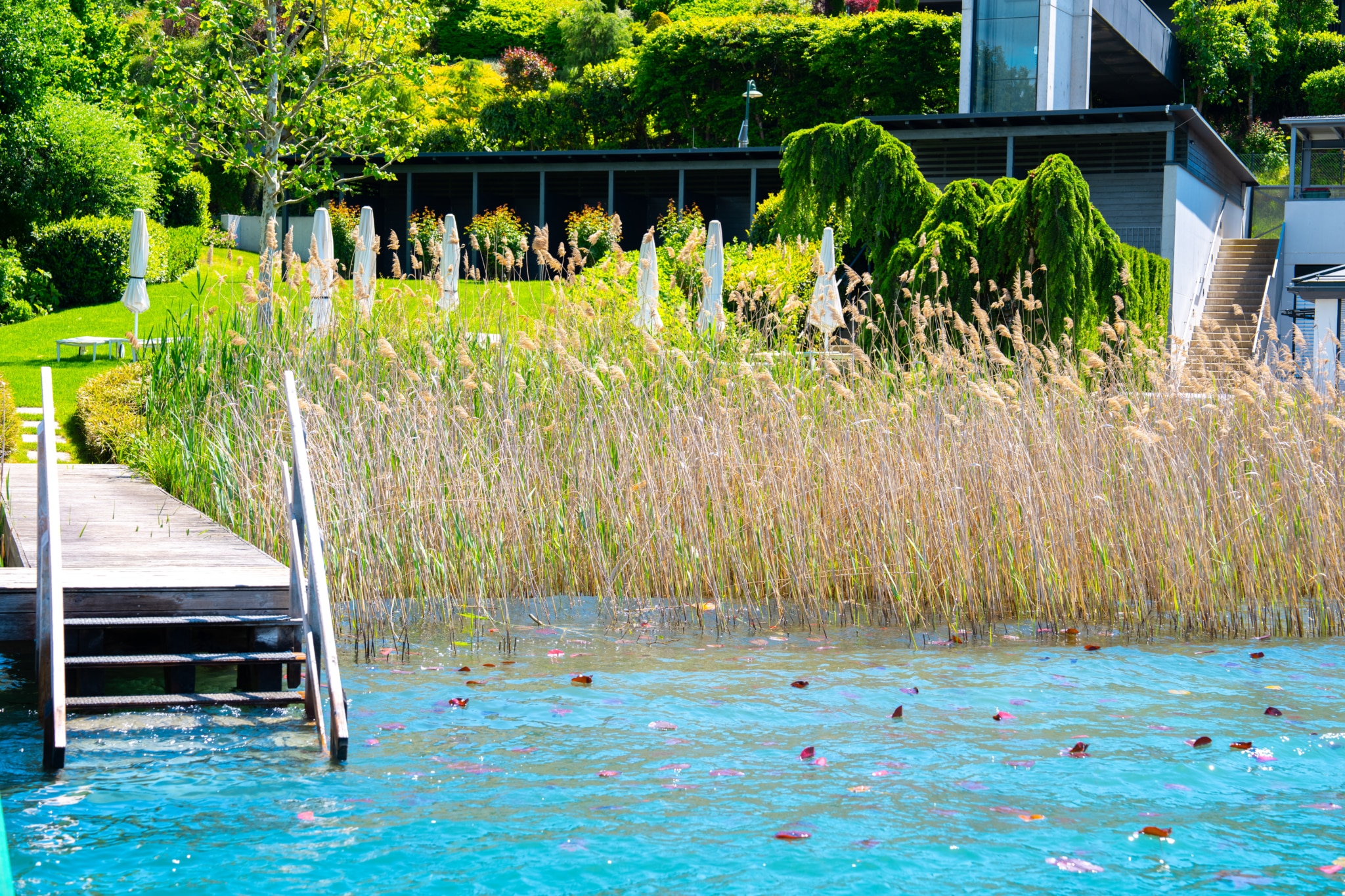 Die wohl größte Annehmlichkeiten dieses Seetraumes (neben der natürlichen und großzügigen Wohnraumerweiterung des Seeblickgartens & der gigantischen Seeblickterrasse) ist die leichte Erreichbarkeit des Strandbereichs bzw. des beheizten Outdoorpools. Direkt von der Seeblickterrasse führt – begleitet von der traumhaften Gartengestaltung – ein charmant angelegter Weg zum davor liegenden beheizten Outdoorpool & die angrenzende Überführung Richtung Panoramalift, mit welchem Sie direkt in den Strandbereich gelangen.