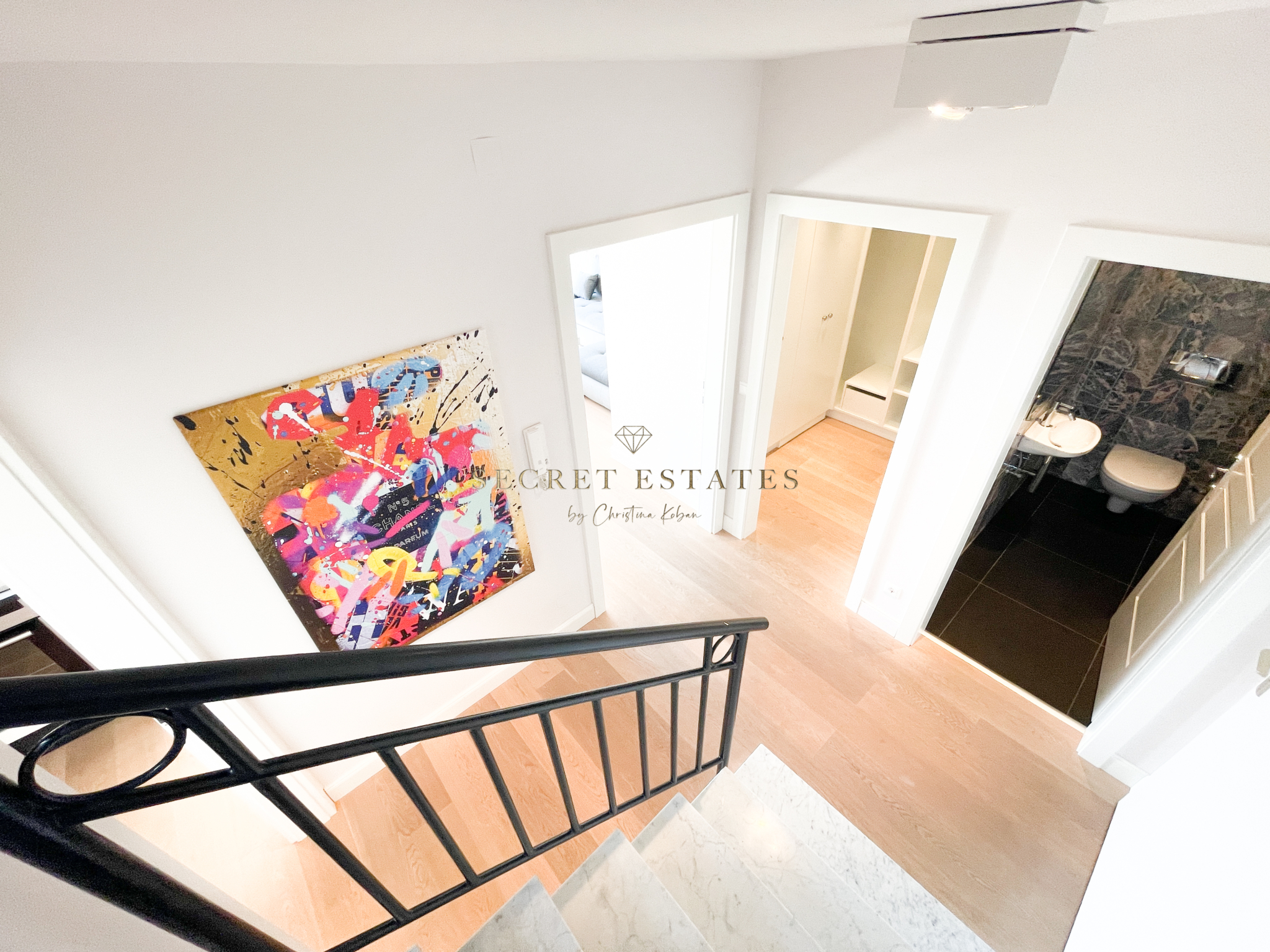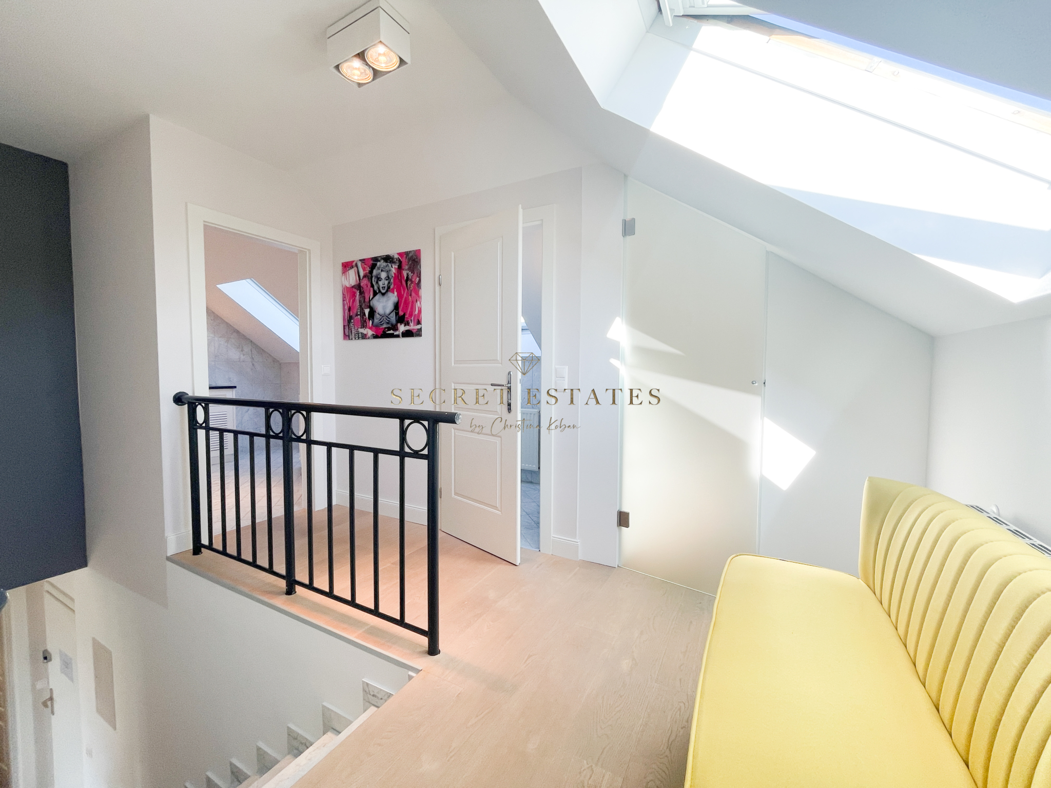 Zum Genießen und Entspannen lädt der südlich ausgerichtete ca. 14 m2 große überdachte Balkon ein, welcher sich über die gesamte Länge der traumhaften Einheit erstreckt. Über eine Treppe im Vorraum gelangt man ins Dachgeschoss zu den beiden Schlafräumlichkeiten, einem großzügigen Badezimmer, begehbaren Garderobe und einer weiteren separten Toilette.